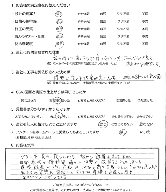 提案していただいた内容が気に入った。地元の会社という安心感。